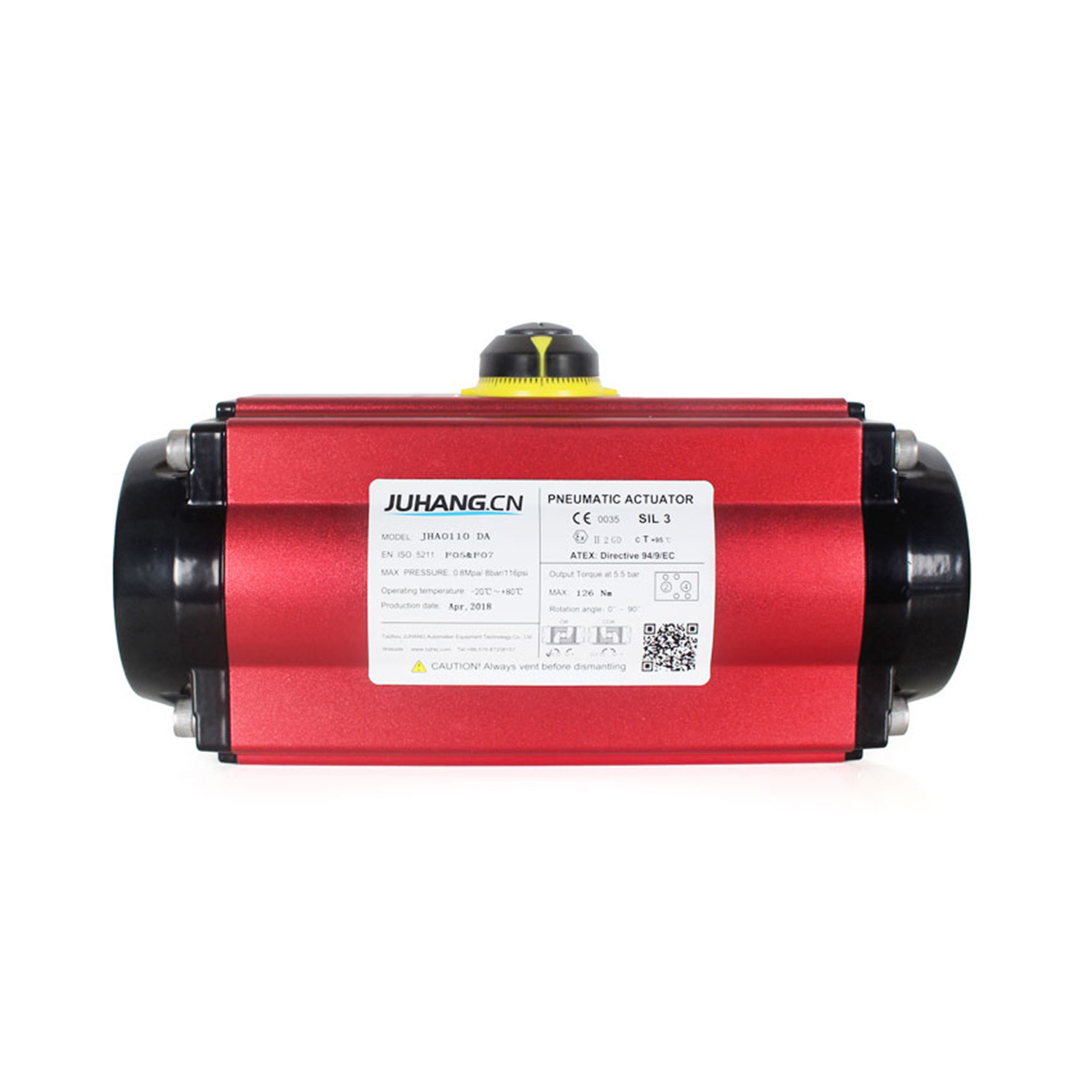 Raf və pençik aktuator Cüt aktyoru Jha0110DA, çıxış şaftının dişli ötürülməsini sürmək və pnevmatik aktuatorun açısal vuruşu ilə piston rəfinin düz hərəkətinə səbəb olan sıxılmış hava ilə təchiz edilmişdir. Ball klapan, kəpənək klapanında, plug klapanında və digər bucaq vuruşu klapan açarı və tənzimləmə, digər fırlanan hallara da tətbiq edilə bilən, sənaye boru kəmərinin avtomatlaşdırma nəzarətinə nail olmaq üçün ideal bir cihazdır.