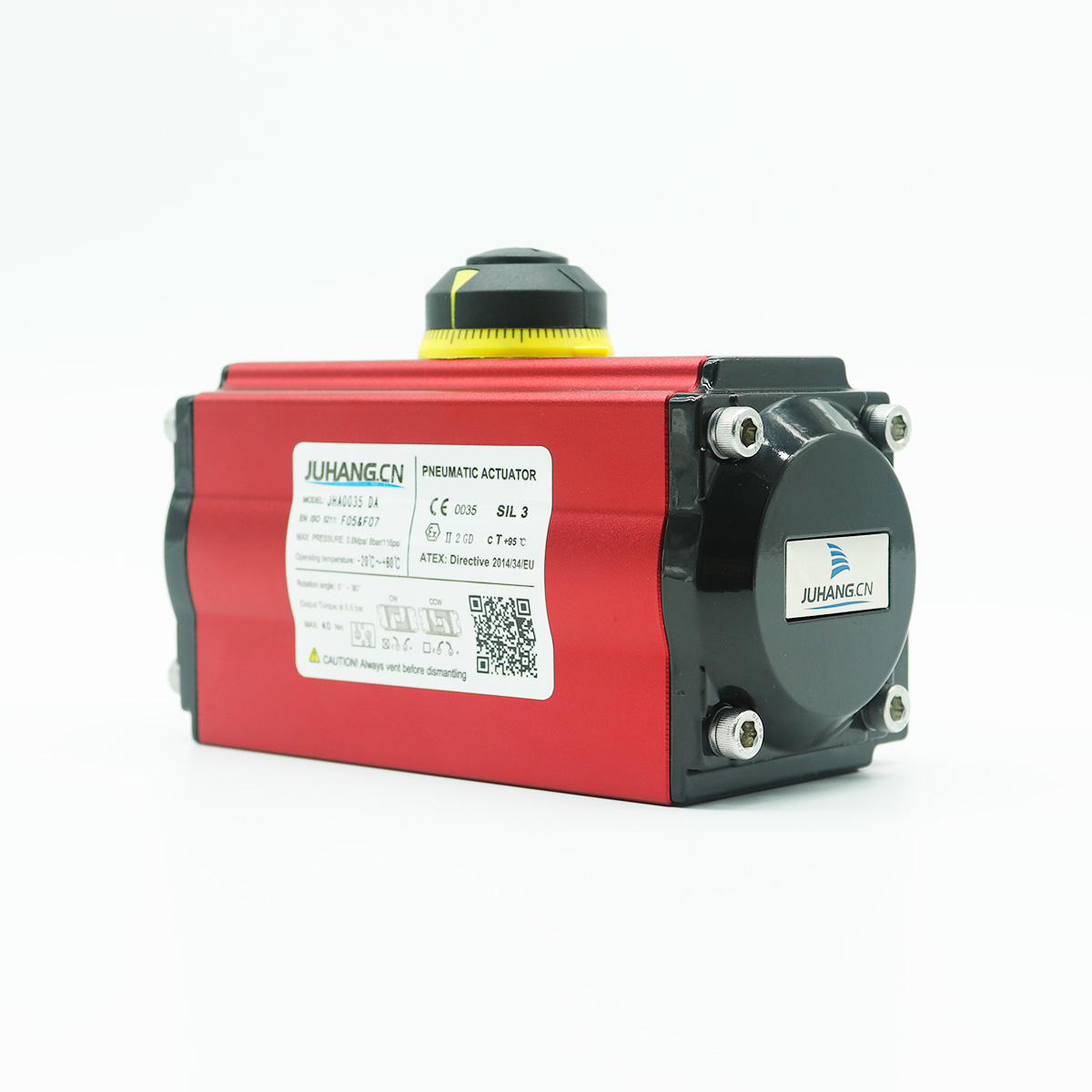 Rəf və Padon pnevmatik aktuator Jha0035DA, yüksək keyfiyyətli, aşağı sürtünmə, uzun ömür, keçid vaxtları 1 milyon dəfədən çox, yüksək sabitlikdən çoxdur.