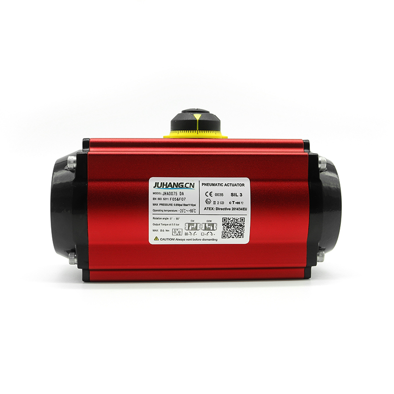 Raf və pennumatik aktuator Cüt aktyor Jha0075DA, çıxış şaftının dişli ötürülməsini sürmək və pnevmatik aktuatorun açısal vuruşu ilə piston rəfinin düz hərəkətinə səbəb olan sıxılmış hava ilə təchiz edilmişdir. Ball klapan, kəpənək klapanında, plug klapanında və digər bucaq vuruşu klapan açarı və tənzimləmə, digər fırlanan hallara da tətbiq edilə bilən, sənaye boru kəmərinin avtomatlaşdırma nəzarətinə nail olmaq üçün ideal bir cihazdır.