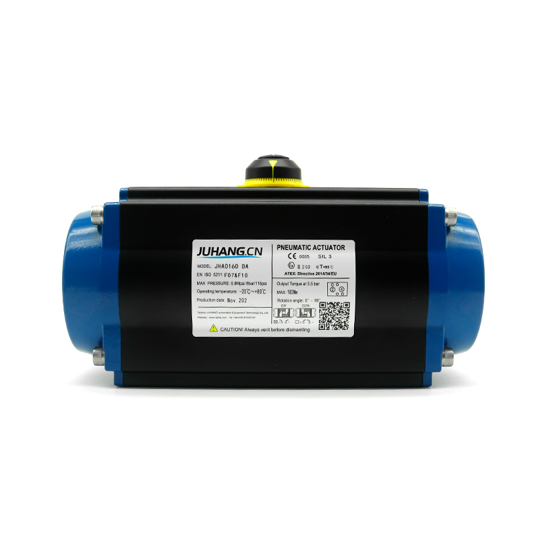Raf və pennematik aktuator ikiqat aktyoru JHA0160DA, çıxış şaftının dişli ötürülməsini sürmək və pnevmatik aktuatorun açısal vuruşu ilə çıxış edən piston rəfinin düz hərəkətini idarə edərək sıxılmış hava ilə təchiz edilmişdir. Ball klapan, kəpənək klapanında, plug klapanında və digər bucaq vuruşu klapan açarı və tənzimləmə, digər fırlanan hallara da tətbiq edilə bilən, sənaye boru kəmərinin avtomatlaşdırma nəzarətinə nail olmaq üçün ideal bir cihazdır.